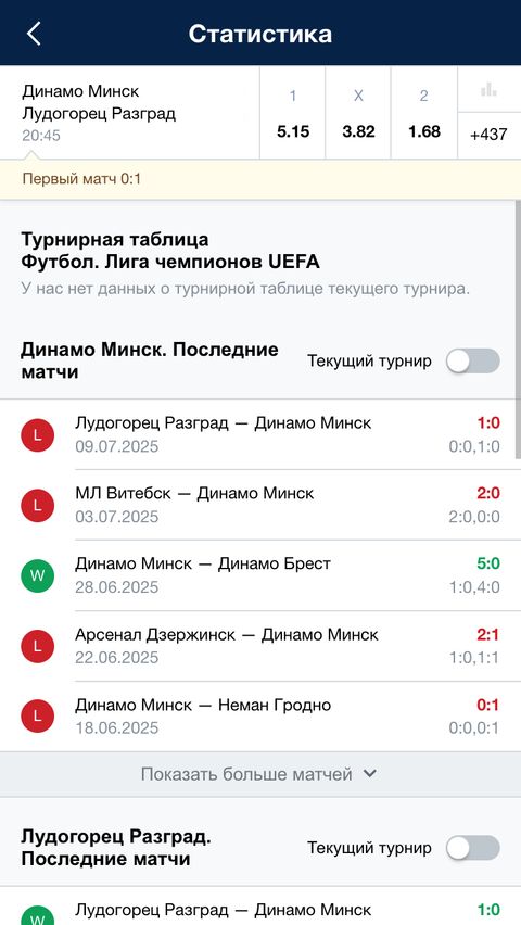 Результаты матчей и статистика